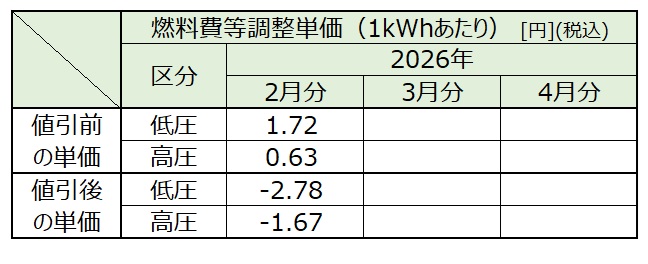 2026年2月分請求書から4月分請求書の毎月分の電気料金において、国が定める値引き単価によりお客様のご使用量に応じた値引きを実施します。