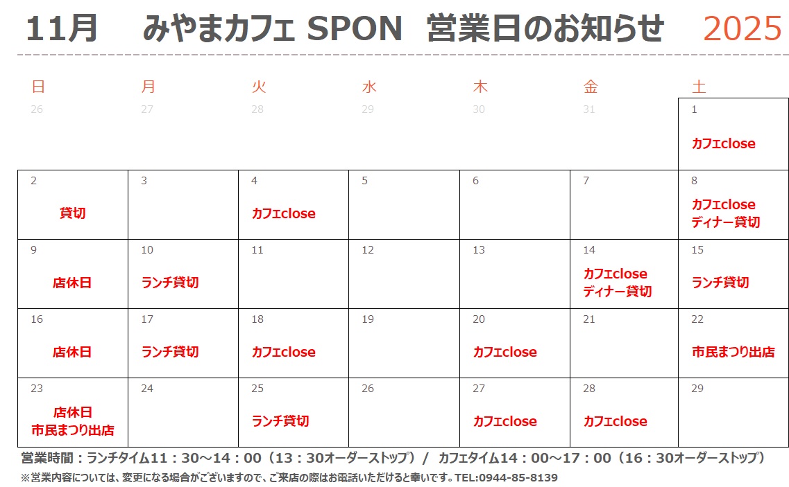 2025年11月営業日のお知らせ