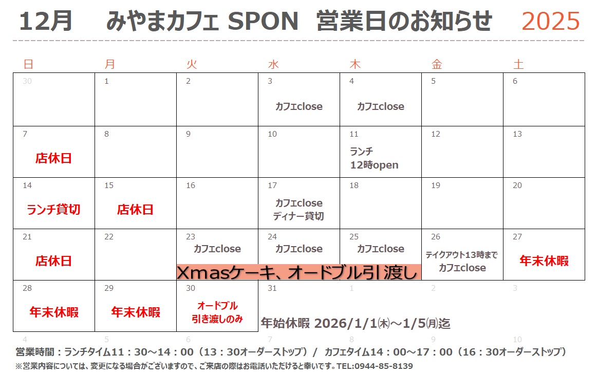 2025年12月営業日のお知らせ