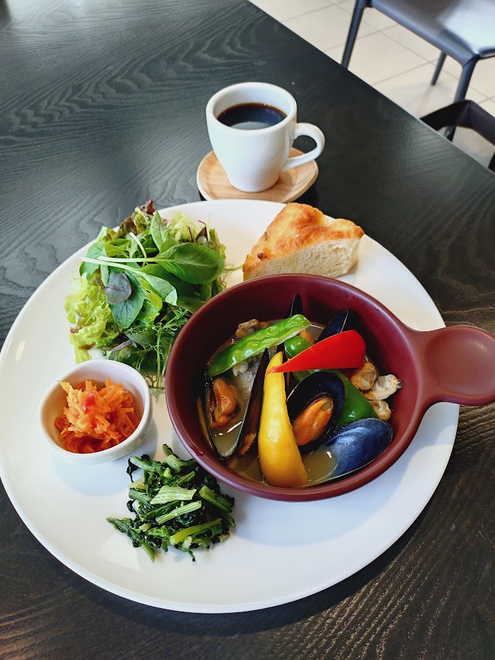 大ぶりのムール貝、タラ、アサリ、オリーブを白ワインで蒸し、魚介の風味をたっぷり引き出しました。